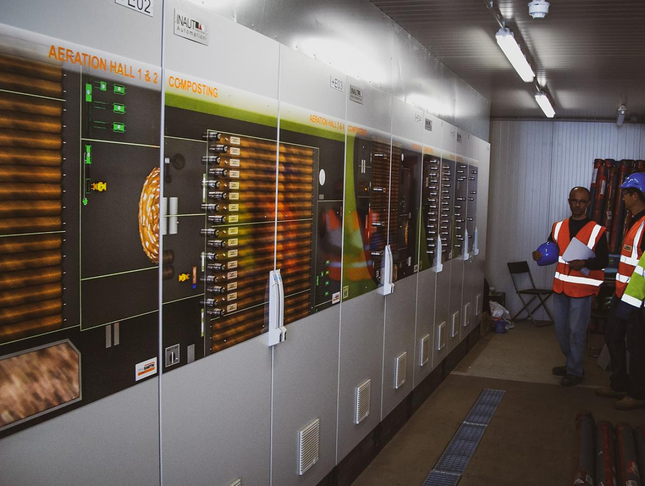 Our control technology is the shared control centre of the aeration system. Temperatures of the temperature monitoring system are read automatically, and the aeration time is individually controlled for each compost windrow depending on the specific process. A touch panel enables easy operation and parameter adjustment. In addition, the control technology is directly connected to visualization software. Changes of parameters are adopted in both systems. The compost control system is delivered as a pre-installed and pre-wired unit (IPC control, touch panel, motor protection switch, control cabinet, etc.).