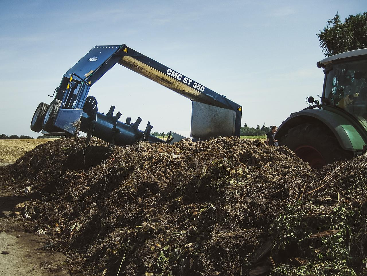 A tractor-pulled compost turner with enormous power thanks to a 3.5 m rotor length and 4 m² windrow cross-section. Material quantities of up to 1,200 m³/h are no problem for this model. Tractor operation makes the CMC ST 350 a cost-effective, powerful solution for medium-sized composting plants.